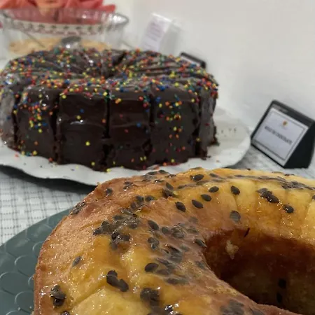 Aqueles que ficam no Pousada Girassol de Pôrto das Galinhas podem sentar na mesa para tomar um pequeno-almoço gratuito.